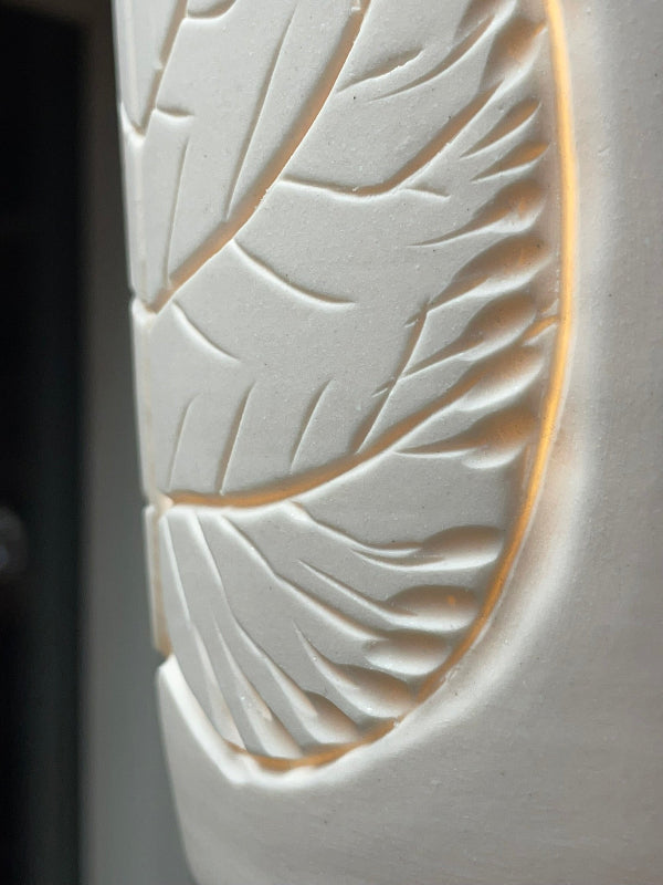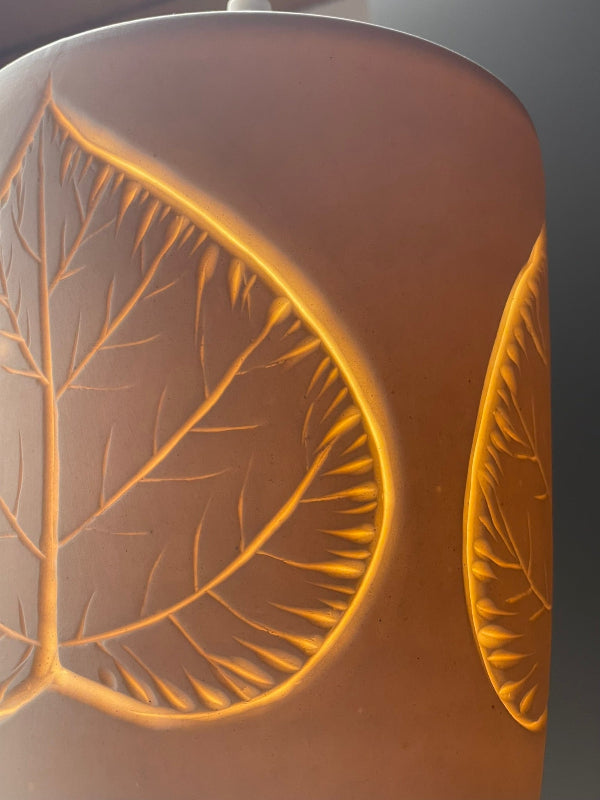 Hand-made and hand-carved, each piece is one-of-a-kind. Unglazed translucent porcelain glows magically when lit, adding warmth to your space.